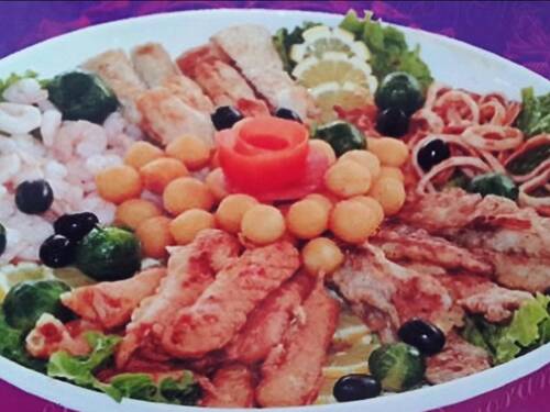 Микс из говяжьих медальонов, бараньего антрекота, куриных крылышек, утиной грудке, венских сосисок. Идеально сочетаются с овощами и рисом. Украшается с зеленью.