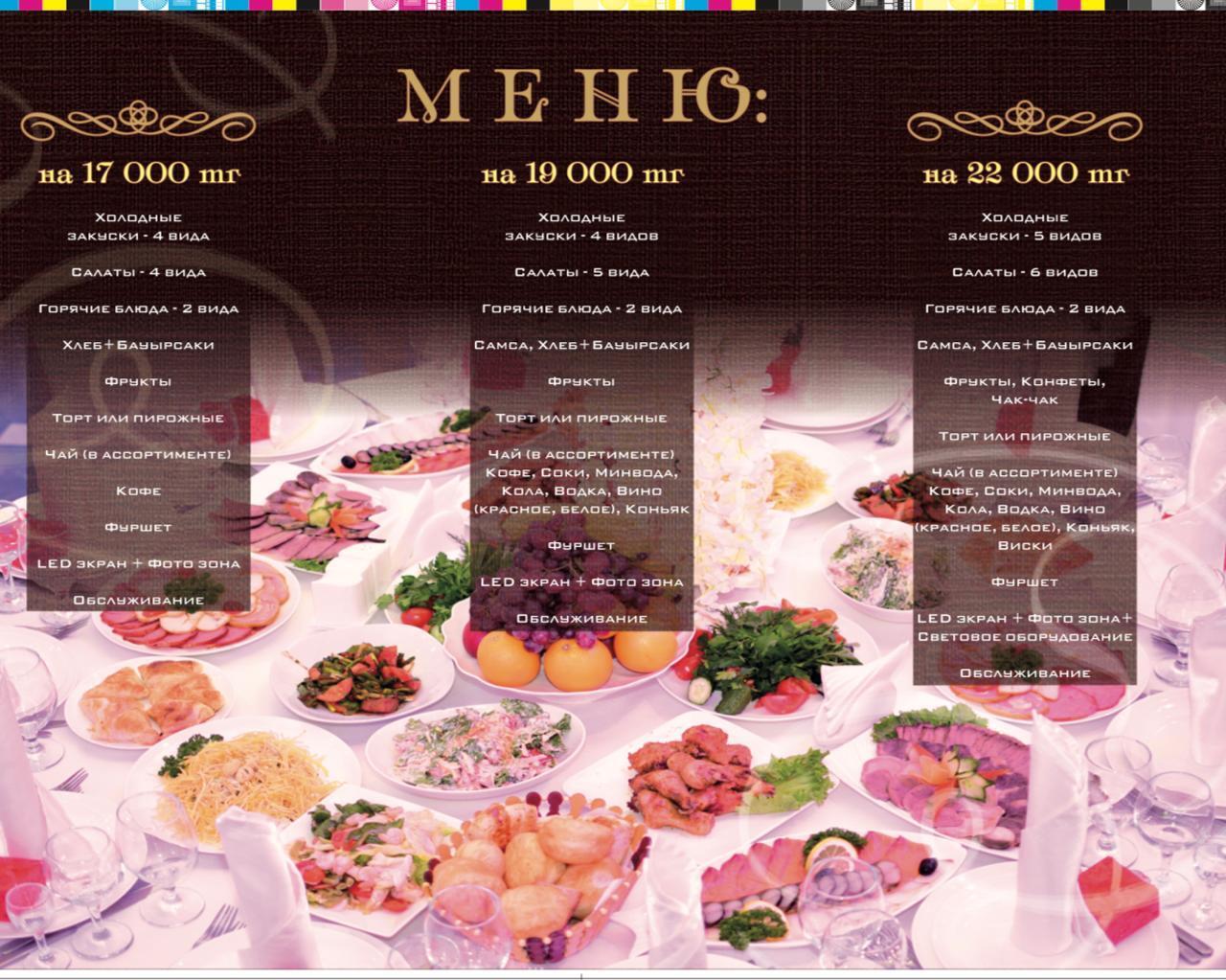 При заказе любого меню заведение сделает подарок клиенту. Каким он будет, зависит от суммы заказа. Это может быть пресс-стена для памятных снимков, торт или LED-экран.