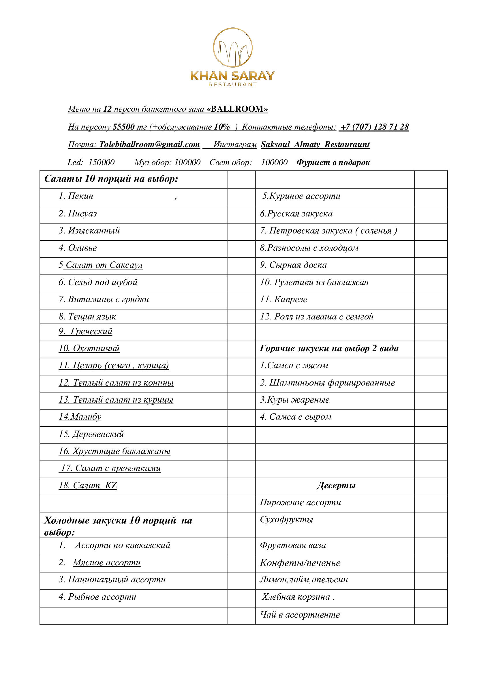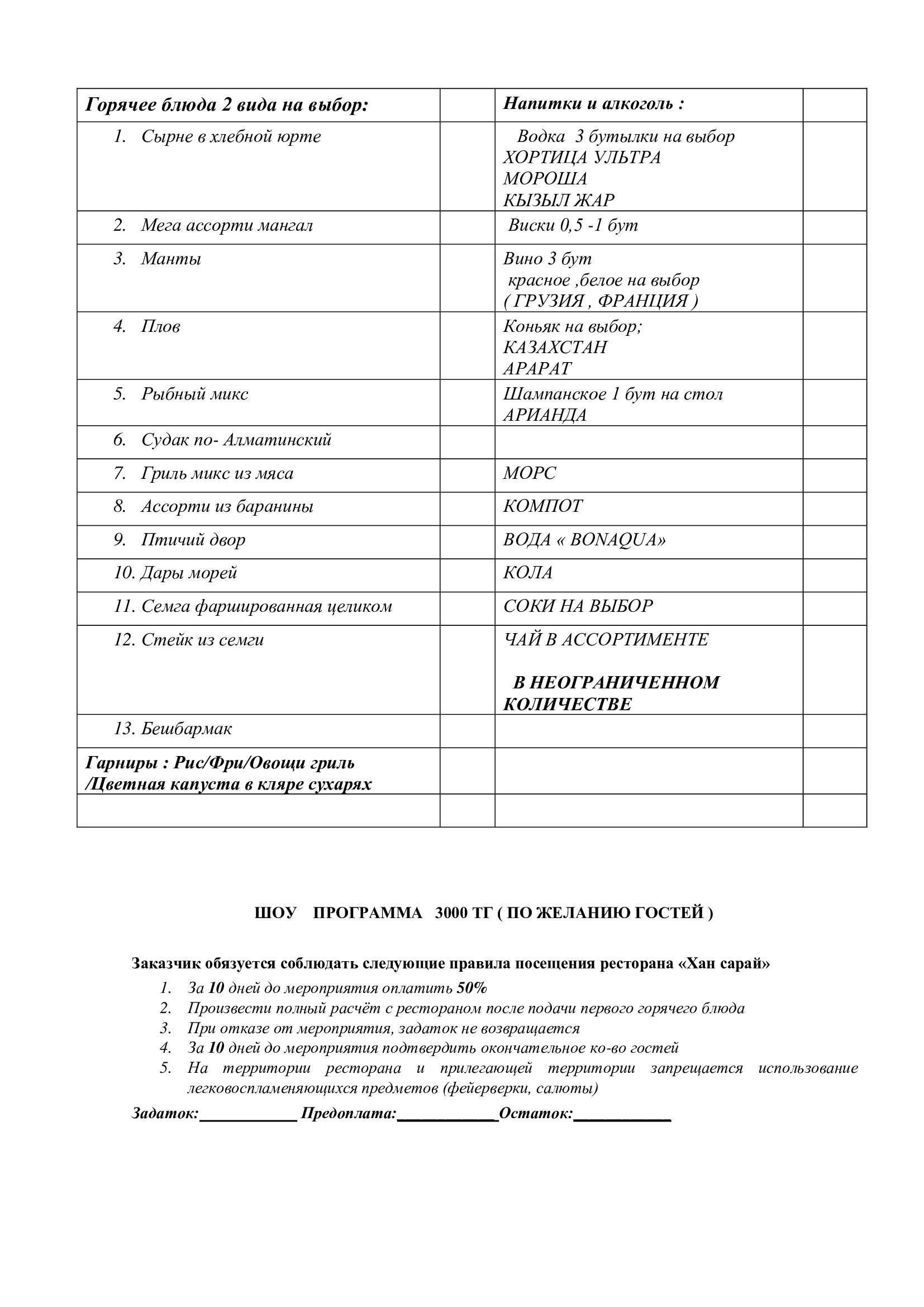 Меню на Ас 10500тг и 12500тг на персонуМеню 19500 тенге на персонуМеню 22000 тенге на персонуМеню 24000 тенге на персонуМеню 29000 тенге на персонуМеню 16500 тенге на персонуНовогоднее меню - 18000 тенге на персонуНовогоднее меню - 27500 тенге на персонуНовогоднее меню - 35500 тенге на персонуНовогоднее меню - 45500 тенге на персонуНовогоднее меню - 55500 тенге на персону