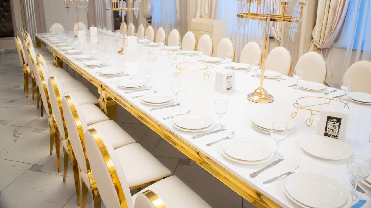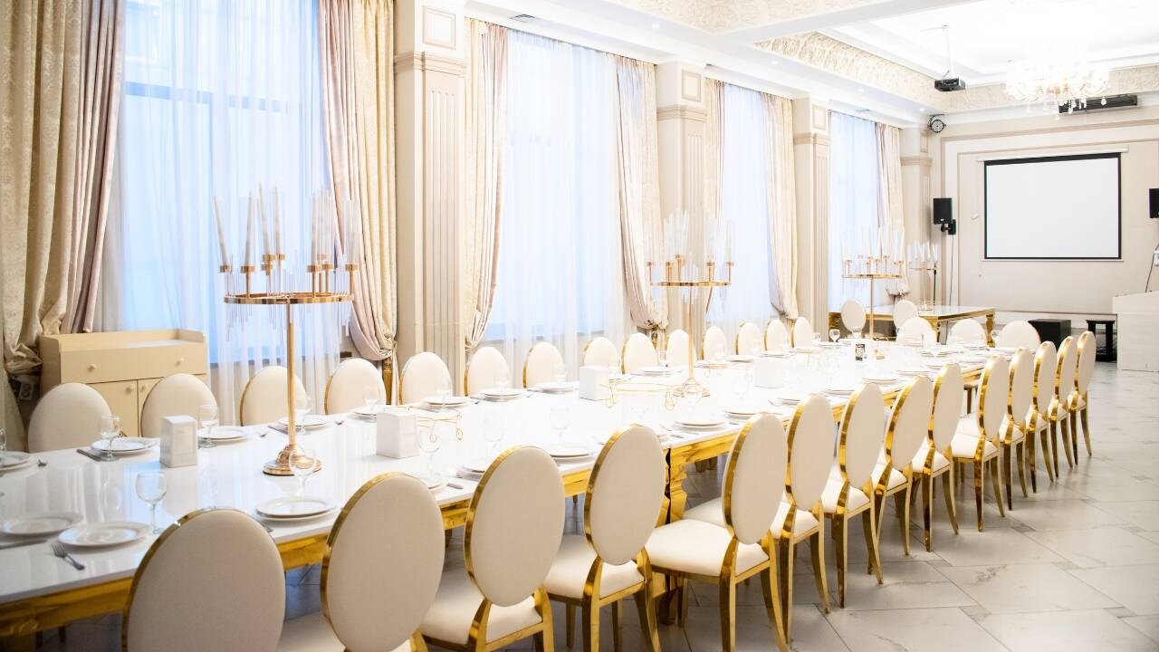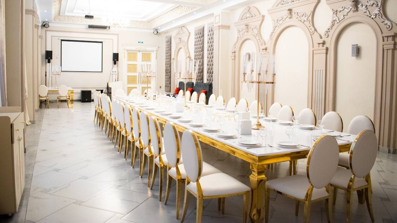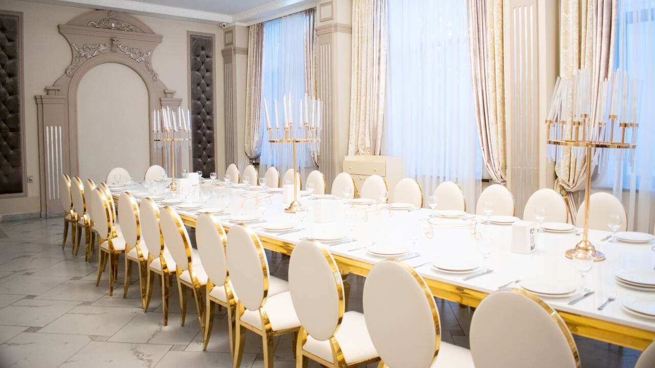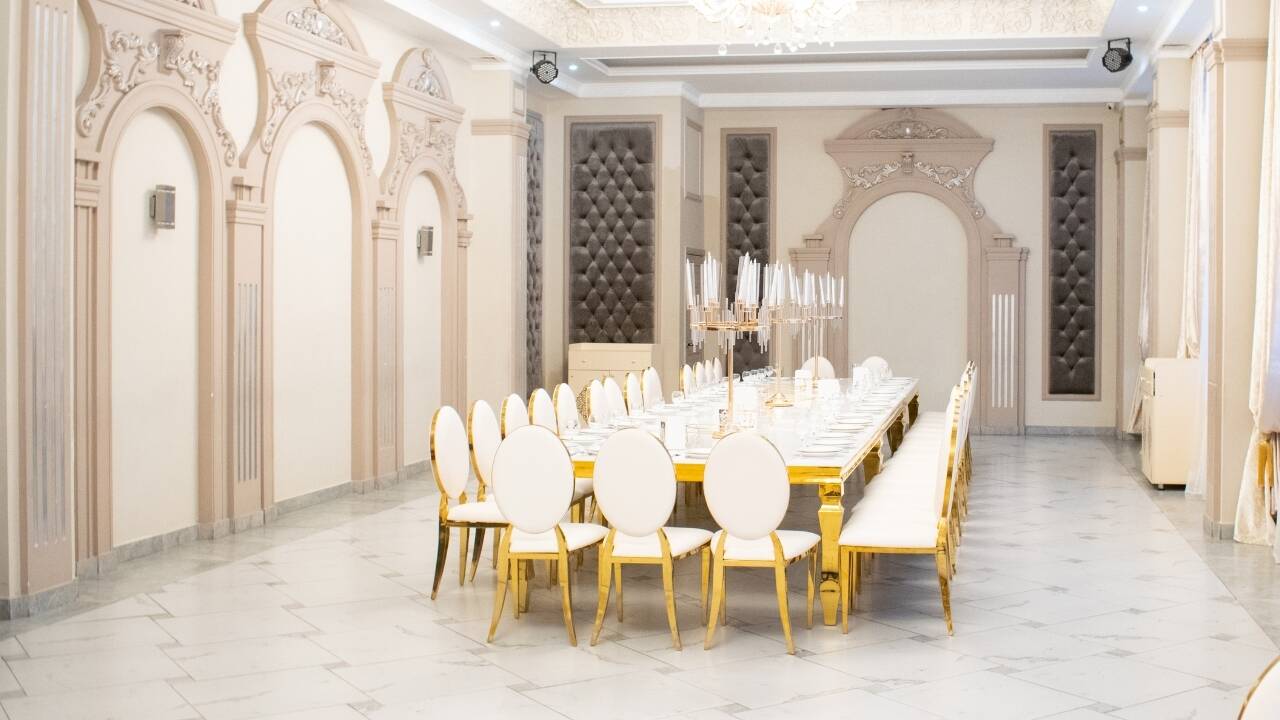 Королевский зал — это место, где роскошь встречается с комфортом. Просторный и элегантный, он идеально подойдет для свадебных банкетов, корпоративных мероприятий и торжеств любого масштаба. Этот зал создан для тех, кто хочет устроить незабываемый вечер с акцентом на стиль и эксклюзивность.