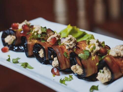 Теплые рулетики из баклажан