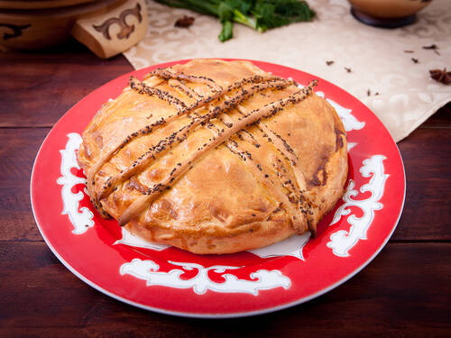 Мясо баранины в собственном желудке запечённое в тесте со специями. Блюдо рассчитано на 5 порций.