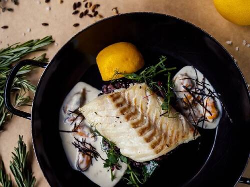 СУДАК С ДИКИМ РИСОМ И СОУС МЮСЛ