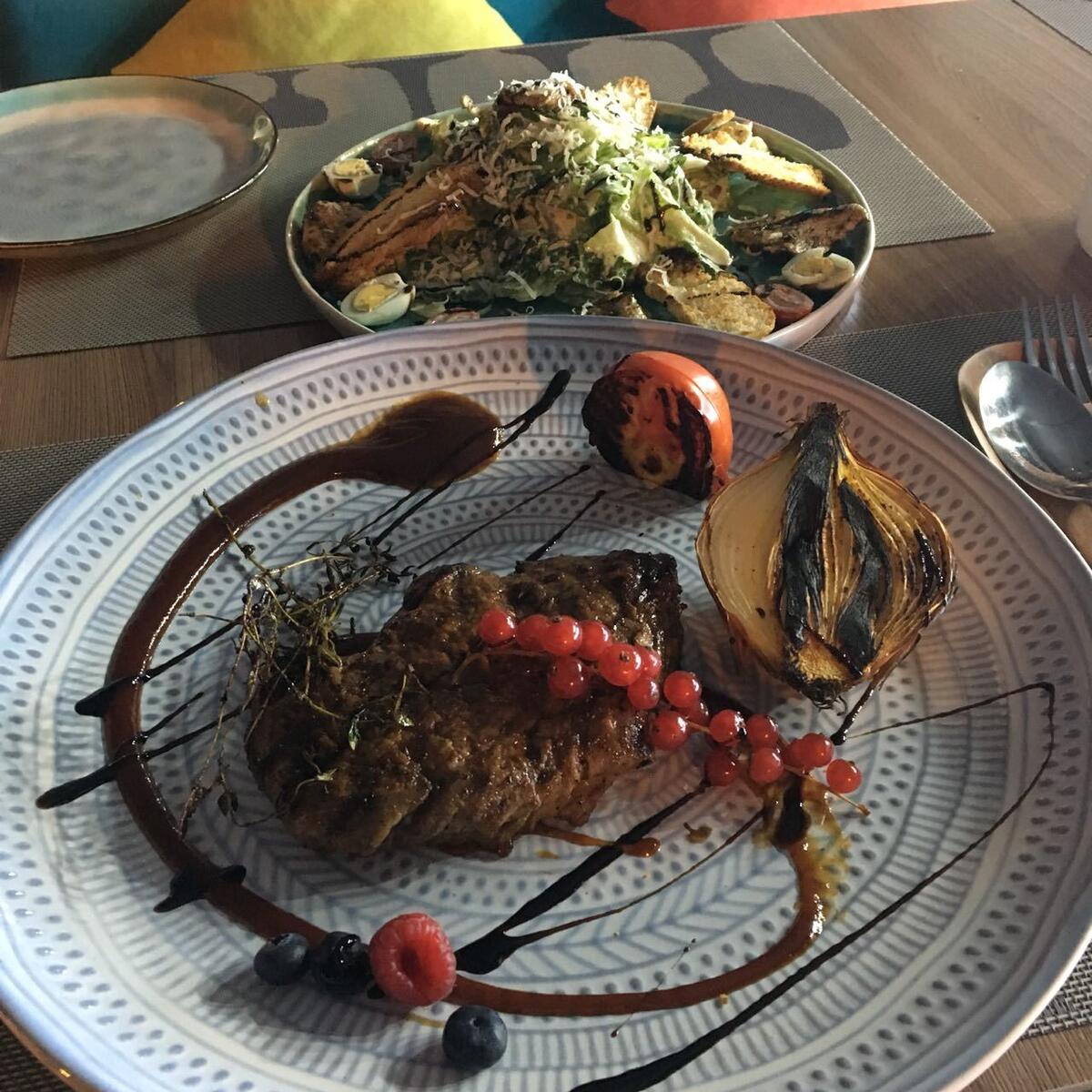 Добрый день! Посидели с одноклассниками, была первый раз. Понравилась атмосфера, музыка была приглушенная что очень понравилось, можно было спокойно общаться с друзьями! Заказали на горячее Мясной-микс и три салата, десерт, было вкусно, цены для такого ресторана очень хорошие. Десерт очень удивил, был очень вкусный, взяли еще домой. Рекомендую тем кто хочет пообщаться и провести приятный тихий вечер! Есть хорошая парковка!